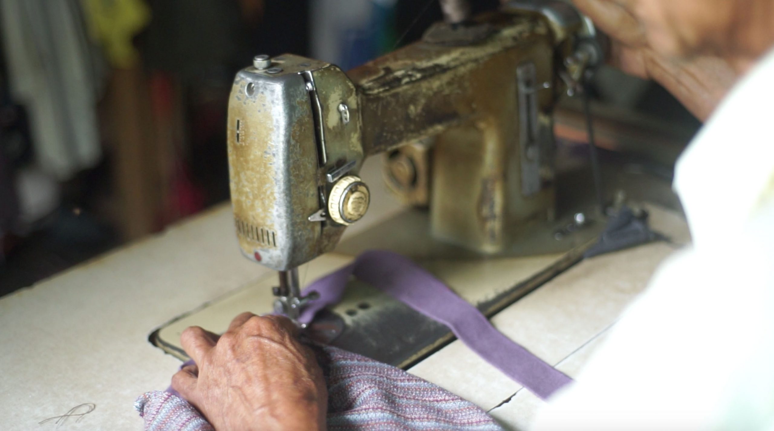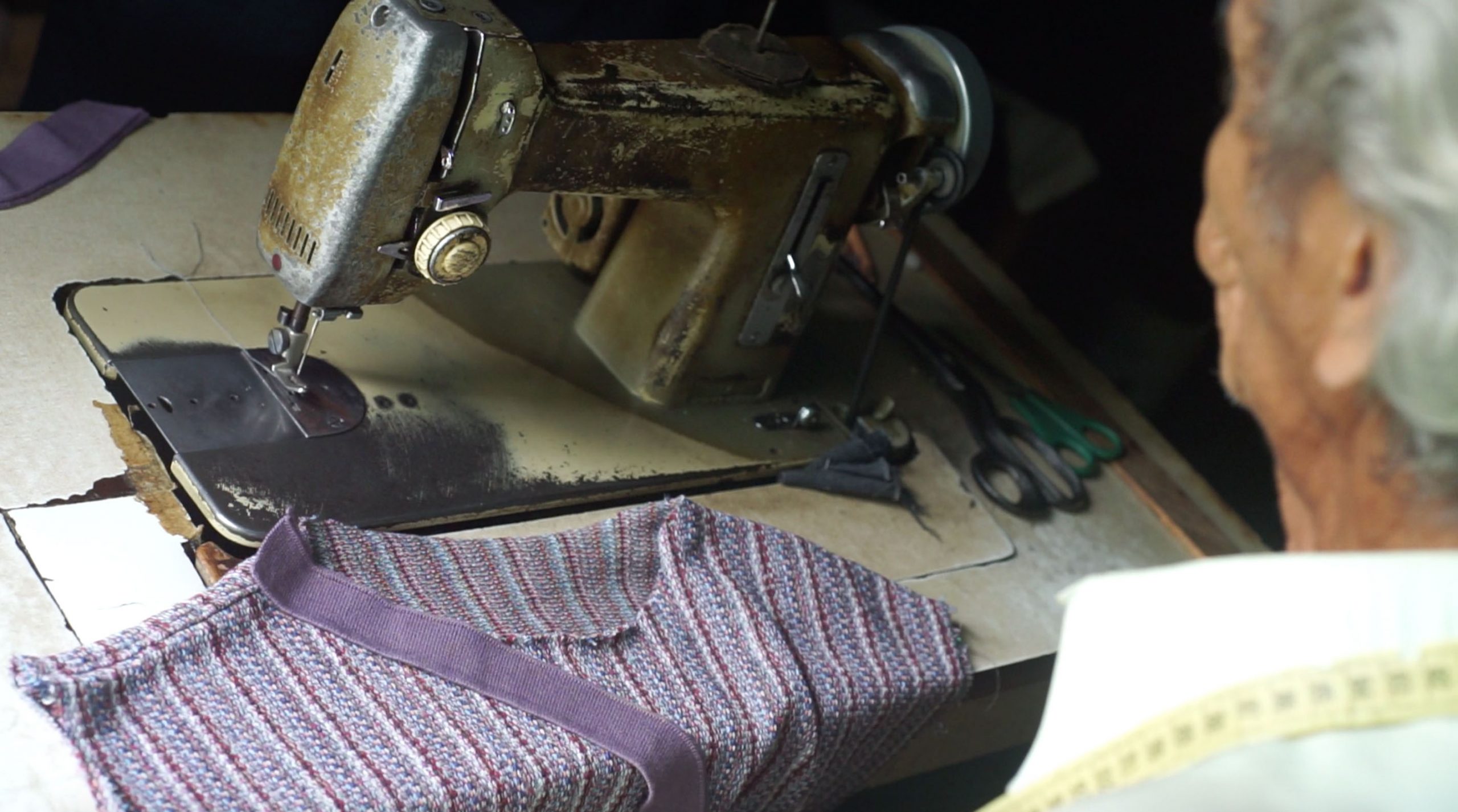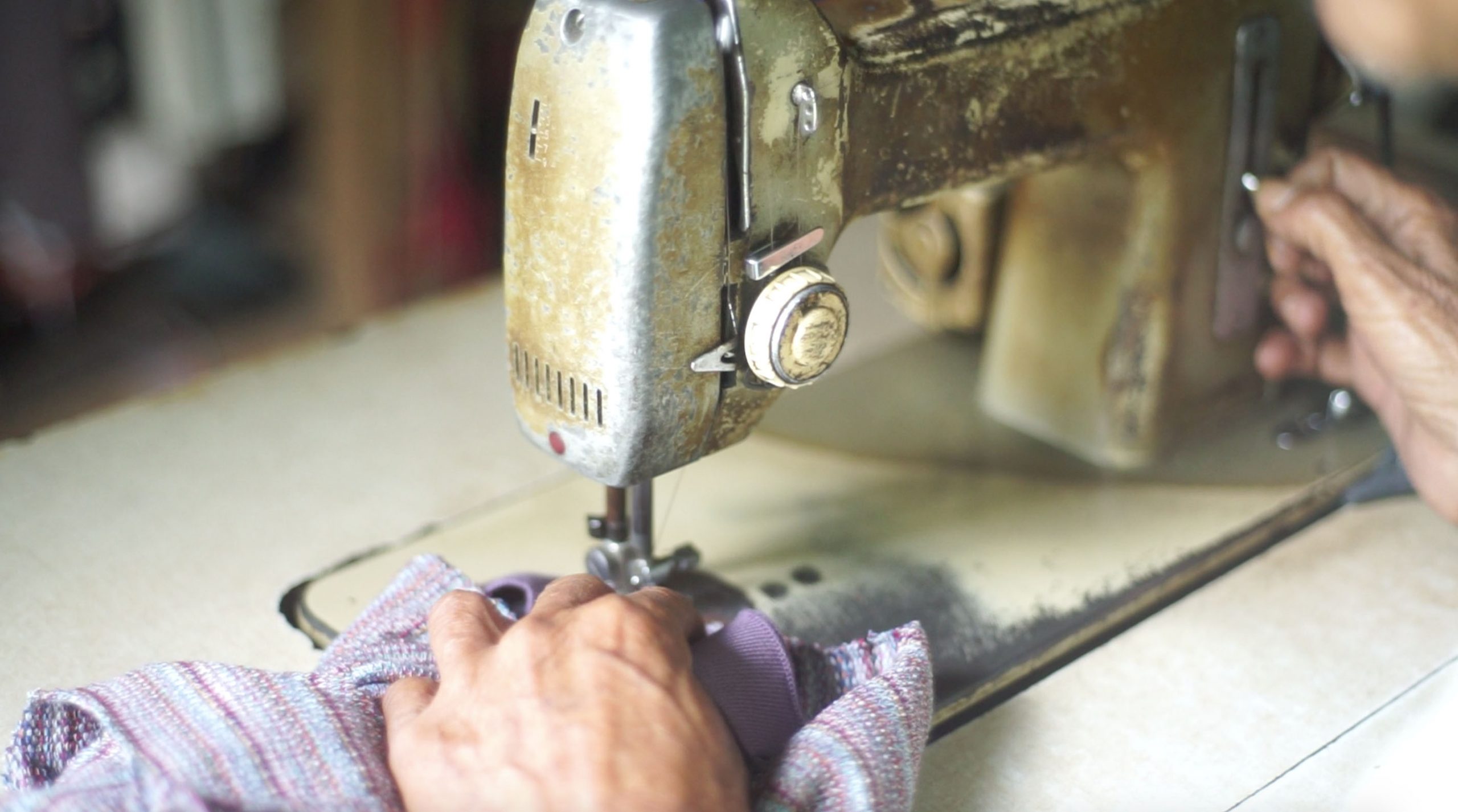 With this Italian pedal sewing machine (works without electricity) from the 60s , which has been through an earthquake and is missing a few pieces, Donma is still sewing today and helped us produce a part of our new collection.